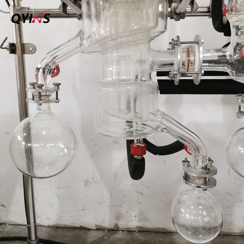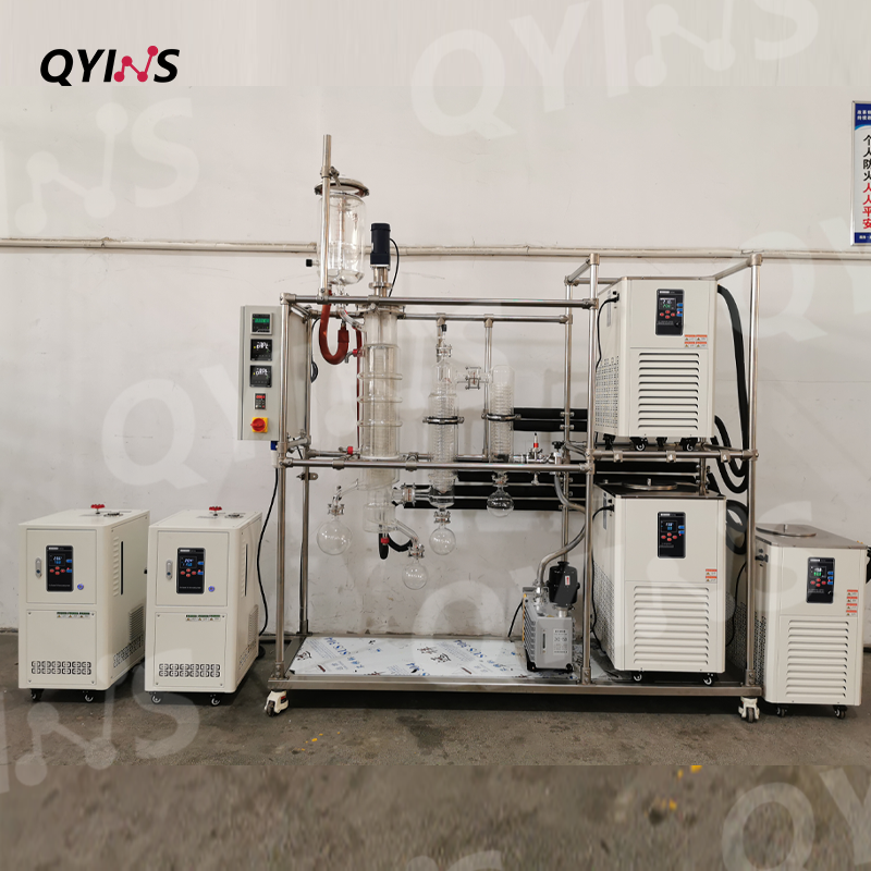 玻璃分子蒸餾 QYMD-60D(有效蒸發(fā)面積0.06㎡,外置兩根冷凝器,配套兩臺低溫泵) 應(yīng)用領(lǐng)域 : 日用化工及化妝品 醫(yī)藥 添加劑 塑料 農(nóng)藥及表面活性劑-礦物油 工業(yè)大麻(CBD) 加工物料 :合成及天然維生素(維生素A、 維生素E、 B胡蘿卜南)提取純化CBD。