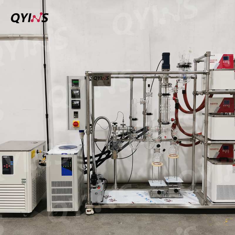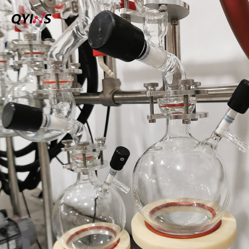 玻璃分子蒸餾 QYMD-60D(有效蒸發面積0.06㎡,外置兩根冷凝器,配套兩臺低溫泵) 應用領域 : 日用化工及化妝品 醫藥 添加劑 塑料 農藥及表面活性劑-礦物油 工業大麻(CBD) 加工物料 。