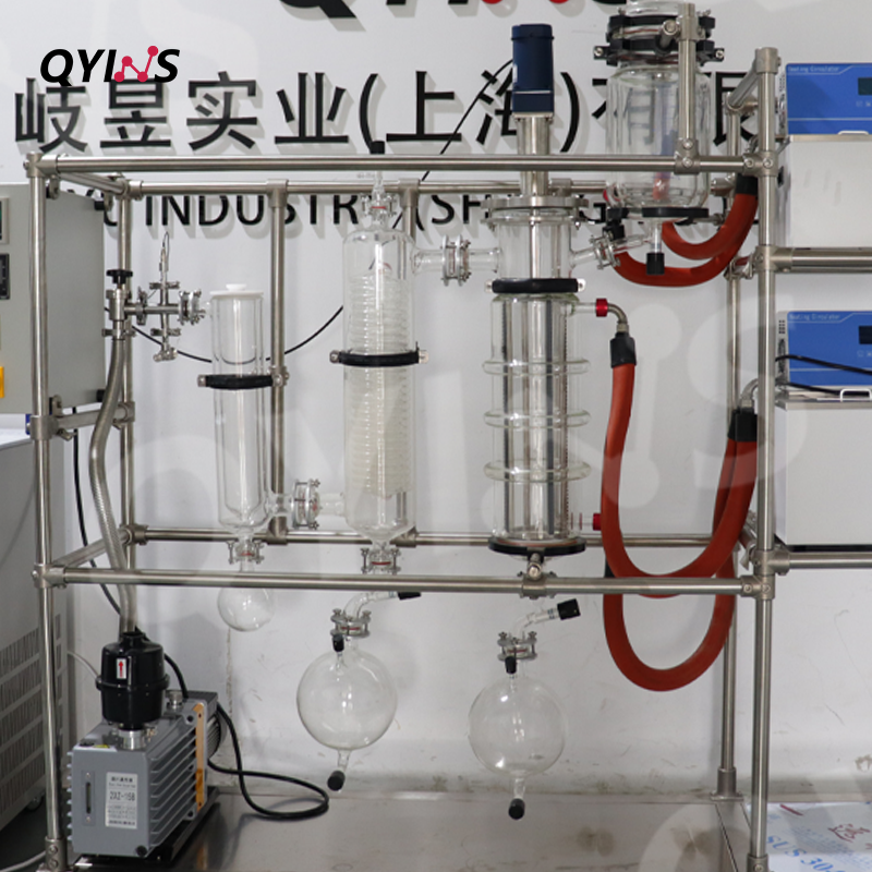 玻璃薄膜蒸發器是一款在化工、制藥、食品等行業中發揮關鍵作用的蒸發設備,憑借其獨特的設計與性能優勢,備受用戶青睞。物料經進料口進入蒸發器后,刮板迅速將其刮成均勻的薄膜,緊密貼合在加熱的筒體內壁。由于液膜極薄,傳熱面積大幅增加,物料在短時間內便能吸收大量熱量而迅速蒸發。