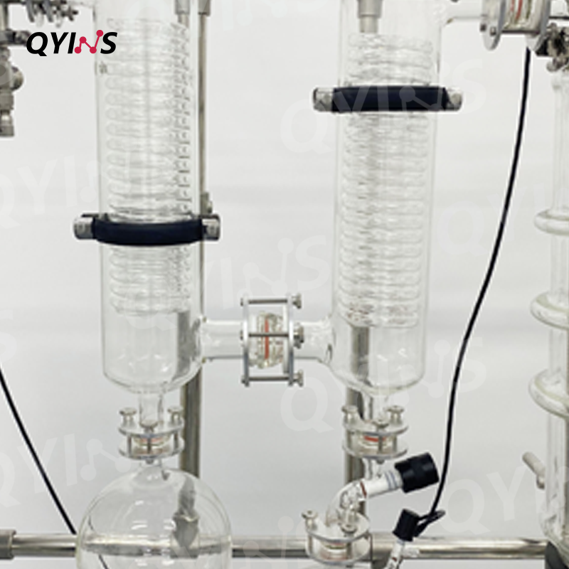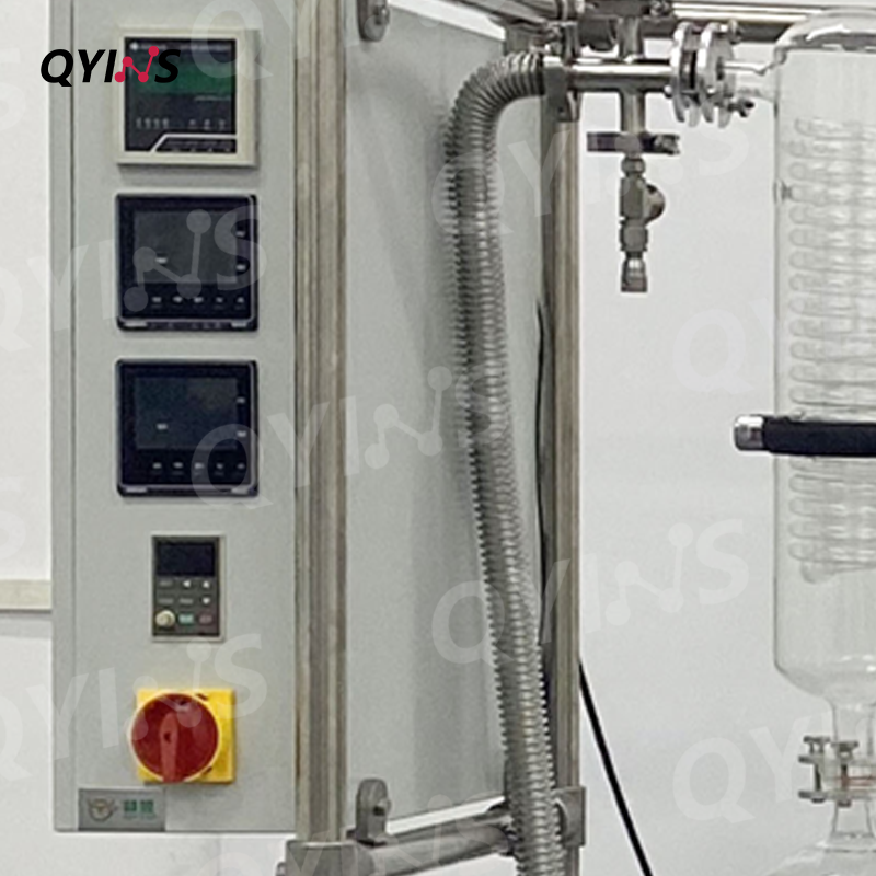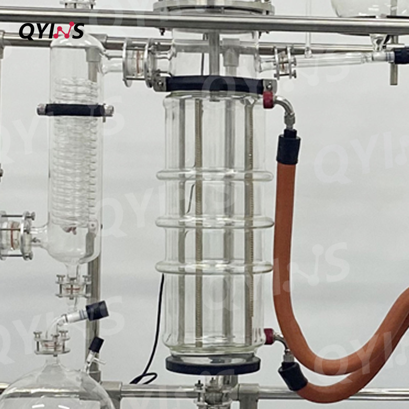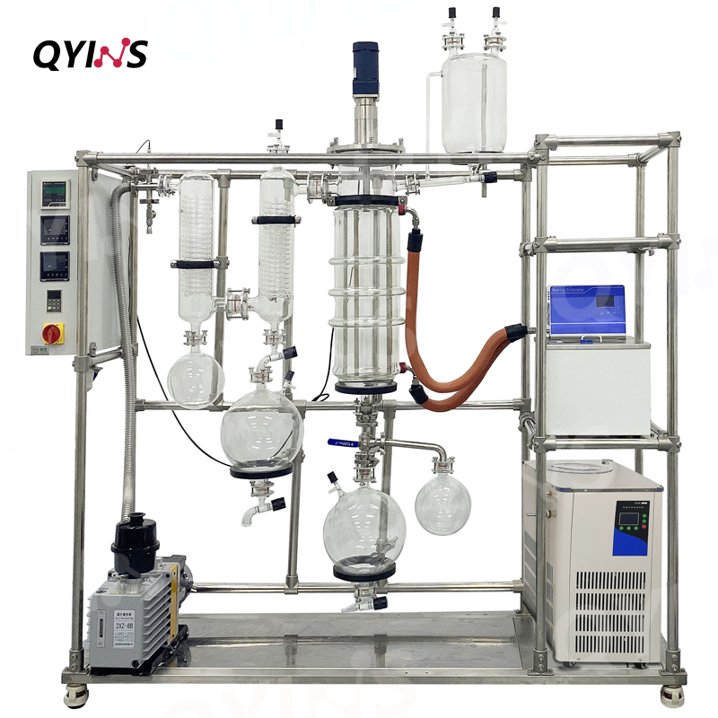 薄膜蒸發器也叫刮膜蒸發器,它與分子蒸餾主要的區別在于減少內置的冷凝器,相較于分子蒸餾,薄膜蒸發器適用于蒸餾或蒸發一些沸點相對較低的熱敏性物質的濃縮、蒸餾、分離、脫溶、脫羧、脫臭等。薄膜蒸發器工作原理:物料進入蒸發器后,通過刮板攪動快速成膜熱源熱量經筒壁與料液進行加熱交換,液膜沸騰、氣化,進入冷凝器內,凝結成液體排出,濃縮液由底部出料口放出。