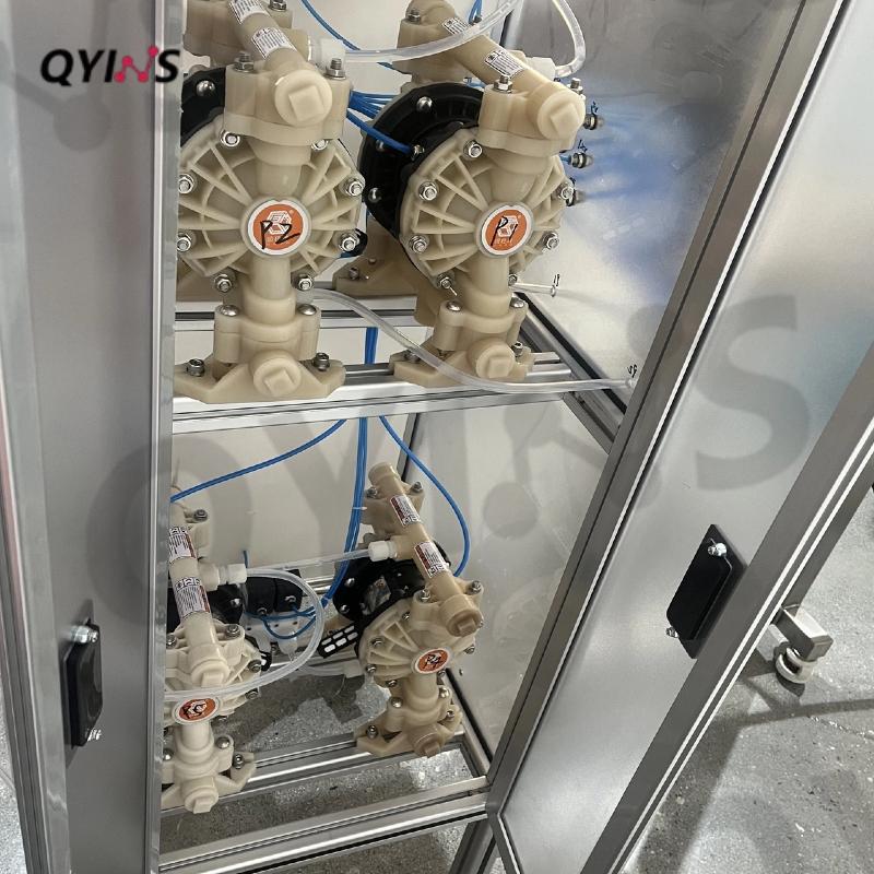 整條線采用PVDF氣動(dòng)隔膜,通過(guò)控制系統(tǒng)調(diào)節(jié),可實(shí)現(xiàn)流體半自動(dòng)進(jìn)出料。